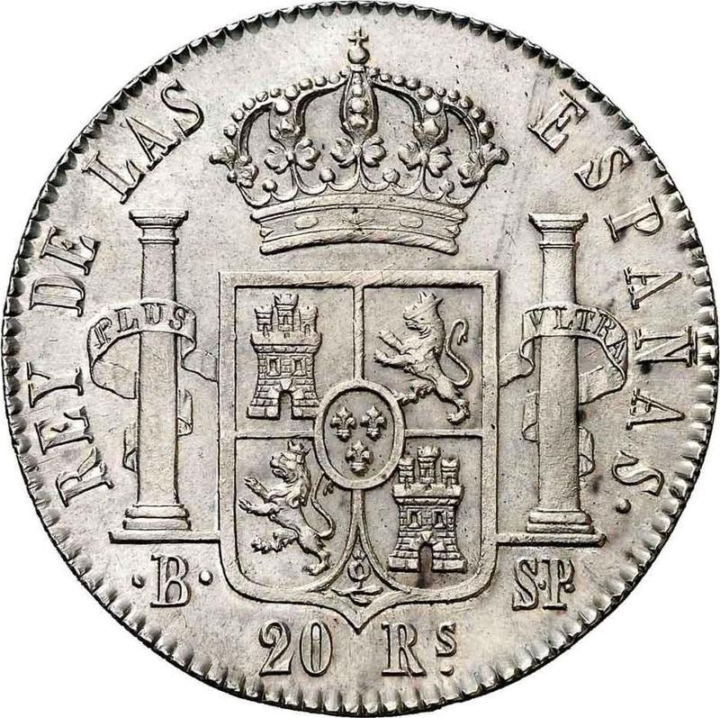 Find out the current coin value of the Spanish 20 Reales 1823 with mark B SP. This silver coin from the times of Ferdinand VII struck at the Barcelona Mint. Wondering how much a coin like this is worth? The record price belongs to the lot 31674 sold at the Heritage Auctions auction for USD 3,720. Bidding took place October 28, 2021.