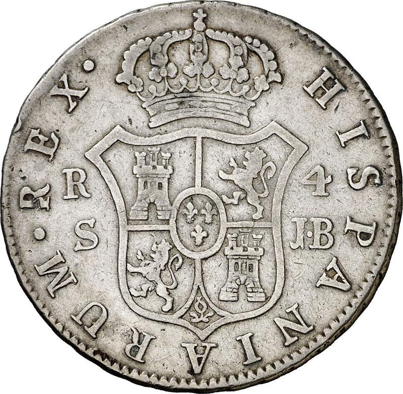 Find out the current coin value of the Spanish 4 Reales 1826 with mark S JB. This silver coin from the times of Ferdinand VII struck at the Seville Mint. Wondering how much a coin like this is worth? The record price belongs to the lot 679 sold at the Aureo & Calicó, S.L. auction for EUR 70. Bidding took place April 28, 2022.