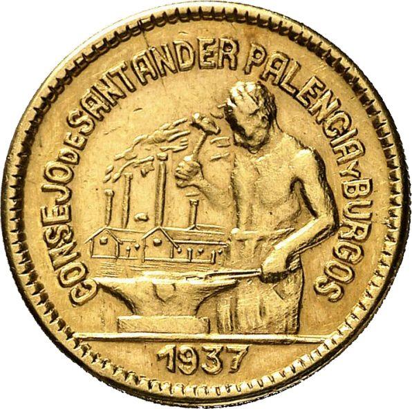 50 Céntimos 1937 "Santander, Palencia and Burgos". Gold. Pattern (Spain, II Republic)
