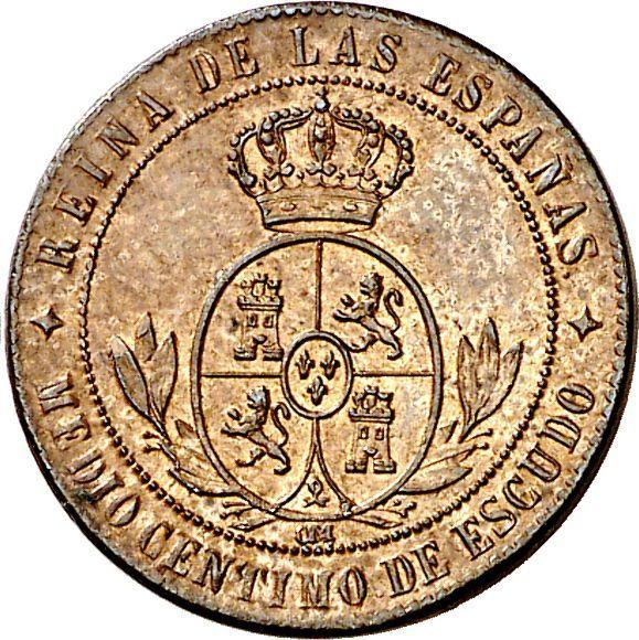 1/2 Céntimo de escudo 1868 OM. 4-pointed stars (Spain, Isabella II)