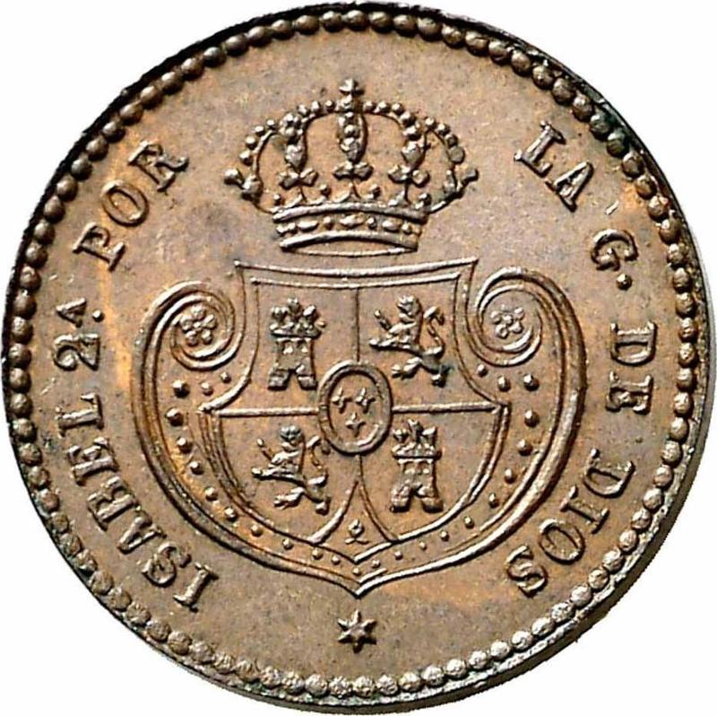 Find out the current coin value of the Spanish 1/20 Real 1853 . This copper coin from the times of Isabella II struck at the Segovia Mint. Wondering how much a coin like this is worth? The record price belongs to the lot 807 sold at the Soler y Llach S.L. auction for EUR 550. Bidding took place May 6, 2021.