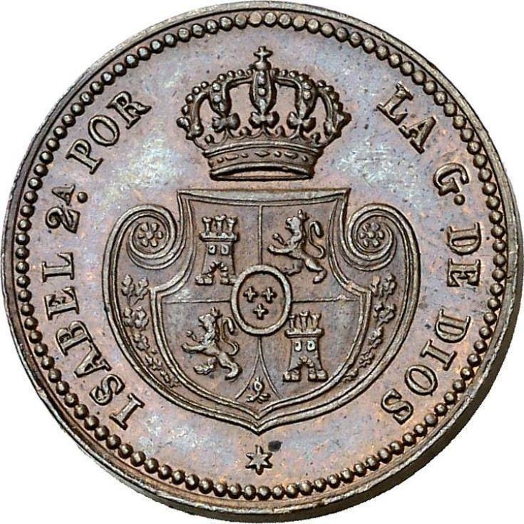 Find out the current coin value of the Spanish 1/10 Real 1850 . This copper coin from the times of Isabella II struck at the Segovia Mint. Wondering how much a coin like this is worth? The record price belongs to the lot 4335 sold at the Cayón Subastas auction for EUR 900. Bidding took place January 21, 2011.