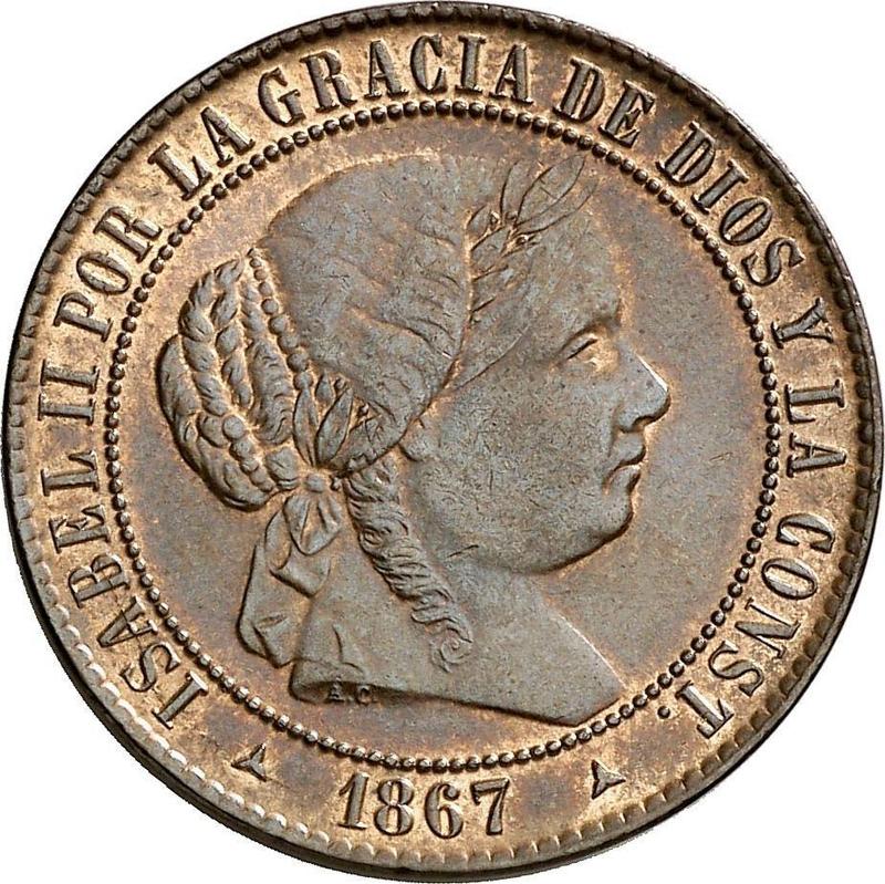 2 1/2 Céntimos de Escudo 1867 OM. 3-pointed stars (Spain, Isabella II)
