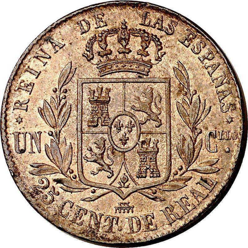 Find out the current coin value of the Spanish 25 Céntimos de real 1864 . This copper coin from the times of Isabella II struck at the Segovia Mint. Wondering how much a coin like this is worth? The record price belongs to the lot 1753 sold at the Tauler&Fau Subastas auction for EUR 340. Bidding took place June 28, 2022.