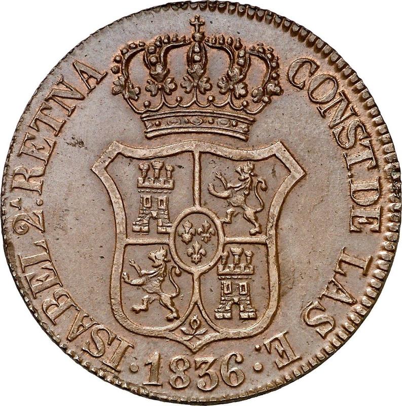 How much is the copper coin of Isabella II 6 Cuartos 1836 "Catalonia", Inscription "RETNA"?