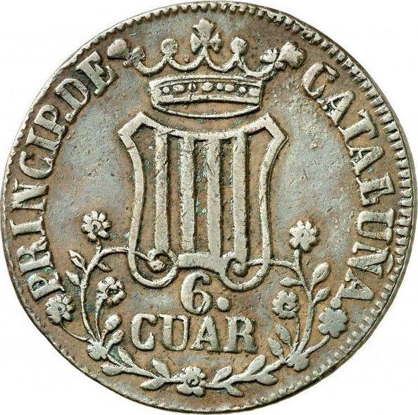 According to the latest data as of December 5, 2025 the average price of a coin 6 Cuartos 1841 "Catalonia", Flowers with 7 petals is 90 USD. The coin is made of non-precious metal, so in poor condition it may have extremely low value and liquidity.