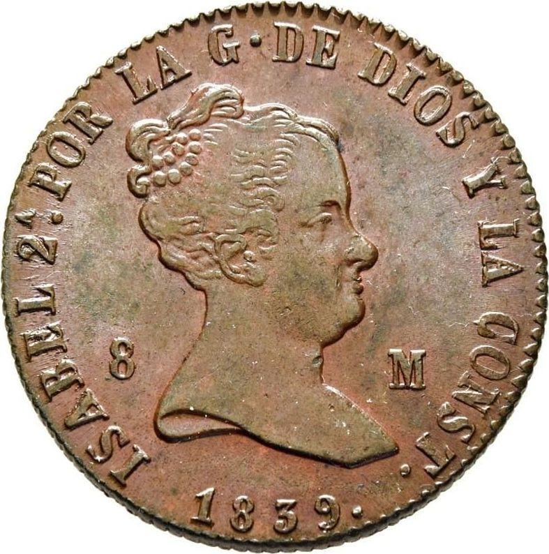 8 Maravedís 1839 Ja "Denomination on obverse" (Spain, Isabella II)