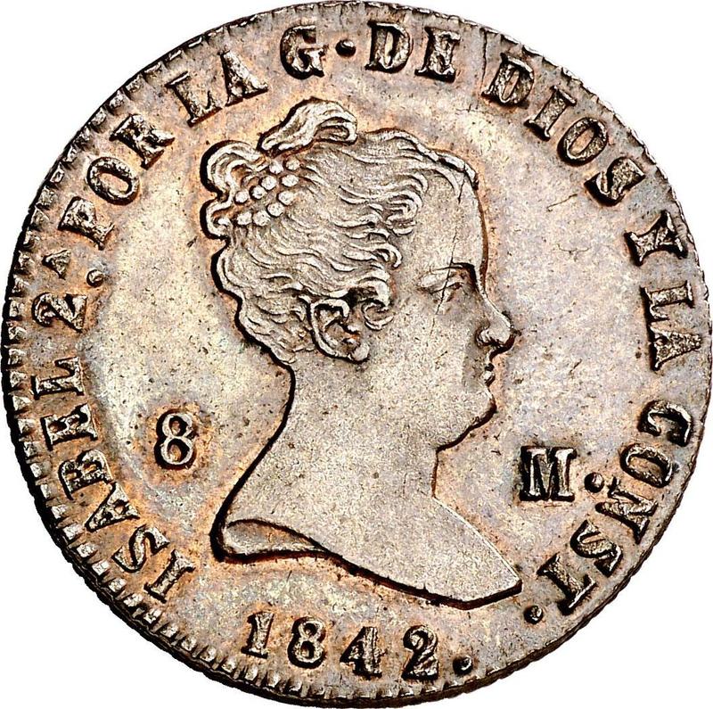 8 Maravedís 1842 "Denomination on obverse" (Spain, Isabella II)