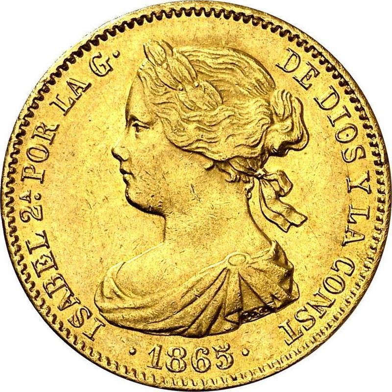 How much is the gold coin of Isabella II 10 Escudos 1865?