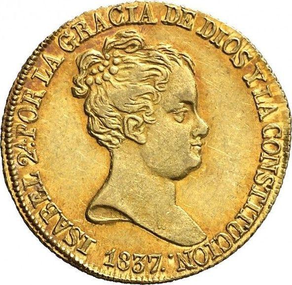 How much is the gold coin of Isabella II 80 Reales 1837 B PS?