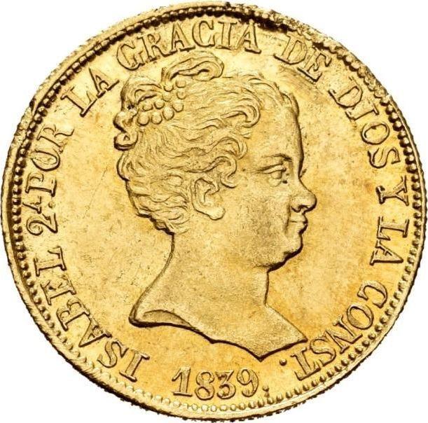 How much is the gold coin of Isabella II 80 Reales 1839 B PS?