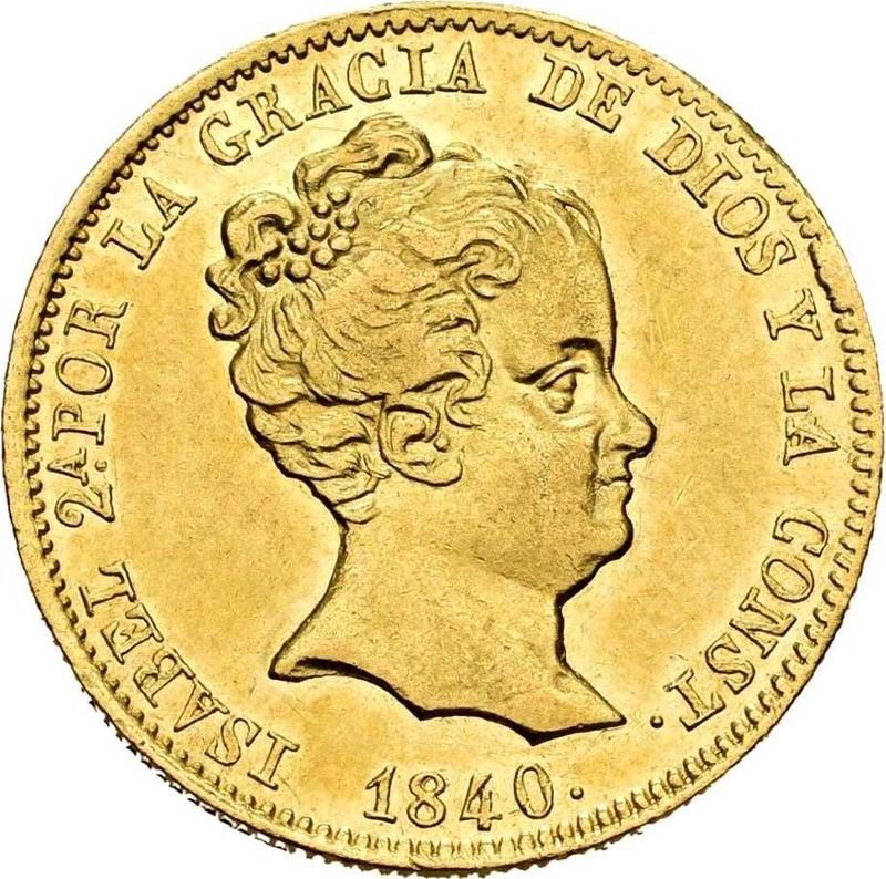 How much is the gold coin of Isabella II 80 Reales 1840 B PS?