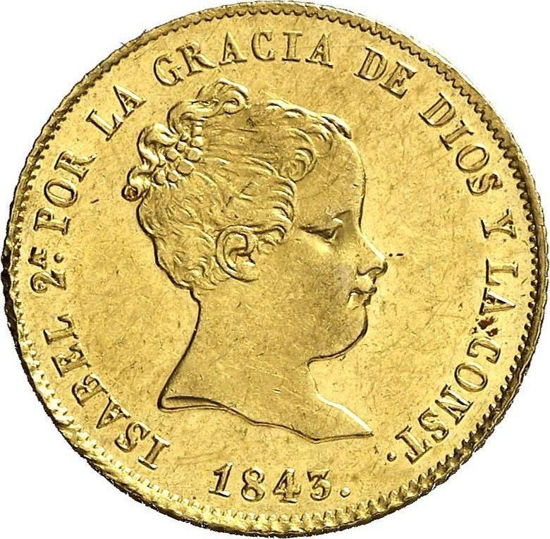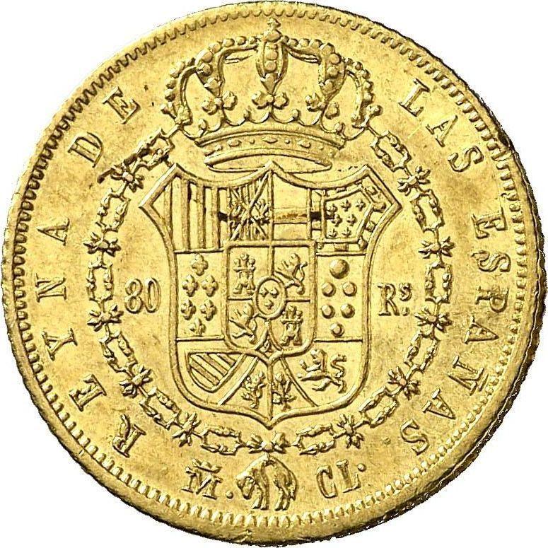 How much is the gold coin of Isabella II 80 Reales 1843 M CL?