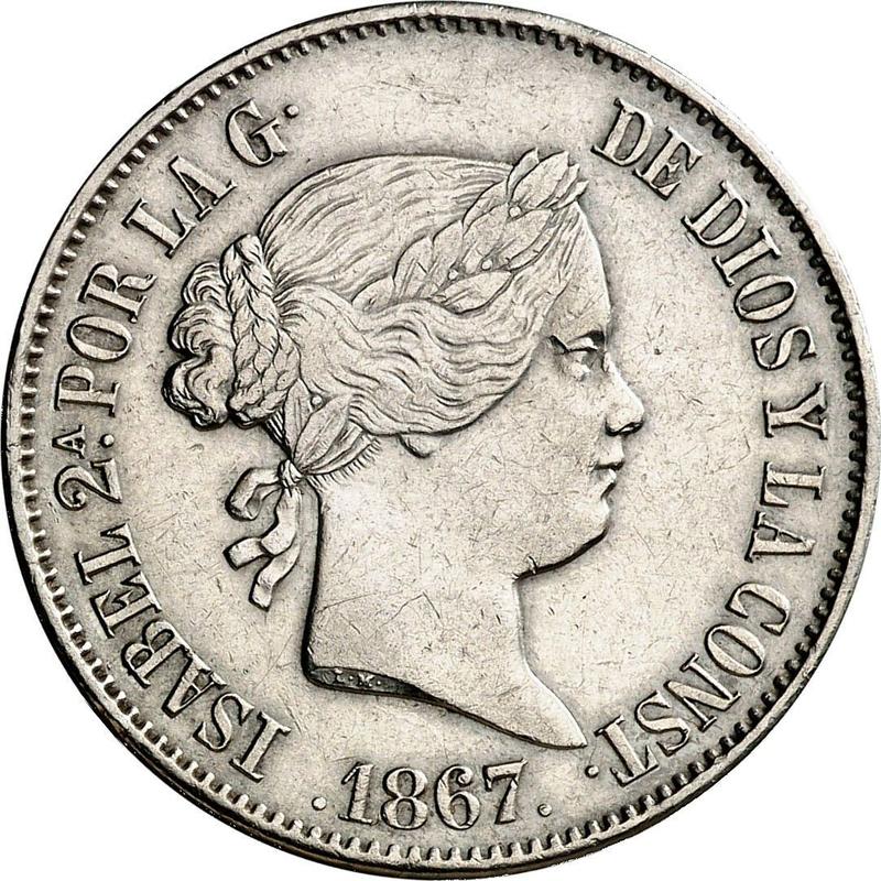 1 Escudo 1867. 6-pointed star (Spain, Isabella II)