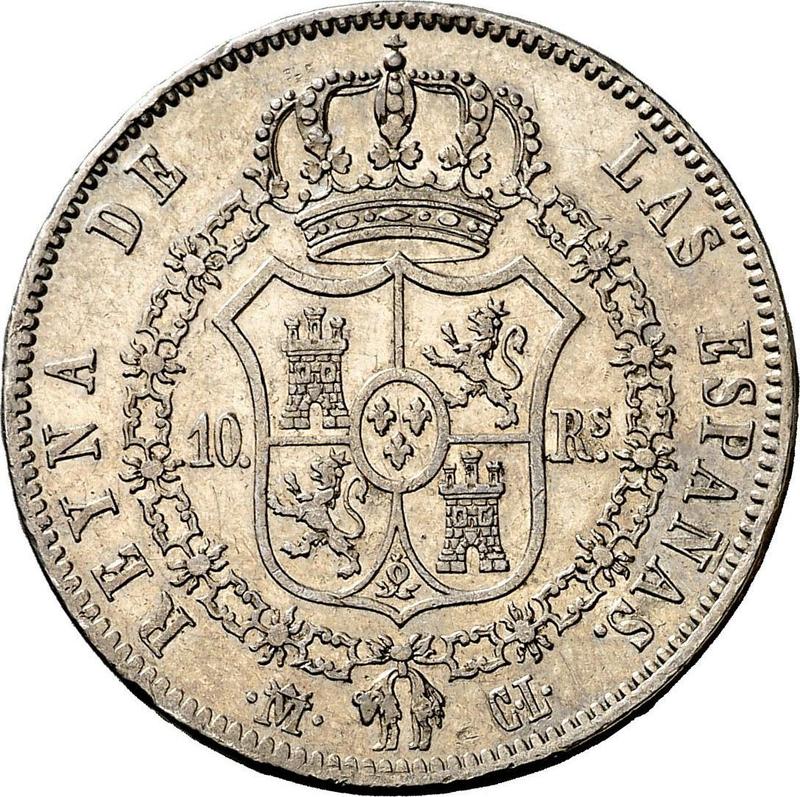Find out the current coin value of the Spanish 10 Reales 1840 with mark M CL. This silver coin from the times of Isabella II struck at the Madrid Mint. Wondering how much a coin like this is worth? The record price belongs to the lot 428 sold at the Aureo & Calicó, S.L. auction for EUR 1,200. Bidding took place April 28, 2011.
