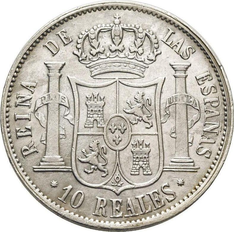 Find out the current coin value of the Spanish 10 Reales 1853 . 8-pointed star. This silver coin from the times of Isabella II struck at the Barcelona Mint. Wondering how much a coin like this is worth? The record price belongs to the lot 548 sold at the Varesi auction for EUR 650. Bidding took place April 24, 2018.