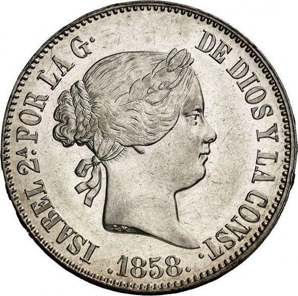10 Reales 1858. 6-pointed star (Spain, Isabella II)