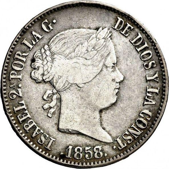 10 Reales 1858. 7-pointed star (Spain, Isabella II)