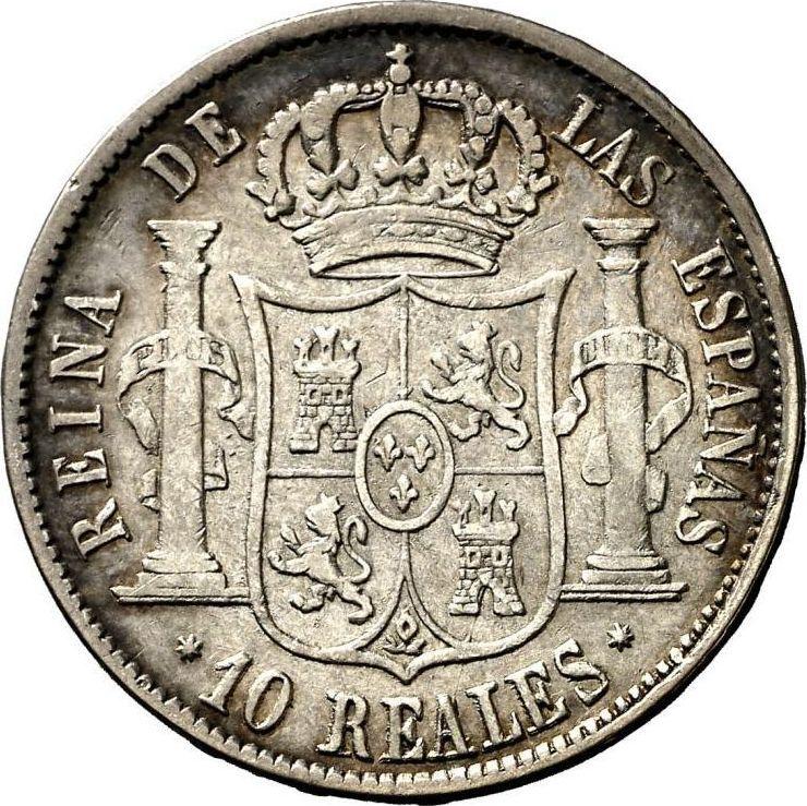 Find out the current coin value of the Spanish 10 Reales 1859 . 7-pointed star. This silver coin from the times of Isabella II struck at the Seville Mint. Wondering how much a coin like this is worth? The record price belongs to the lot 396 sold at the Aureo & Calicó, S.L. auction for EUR 650. Bidding took place November 10, 2016.