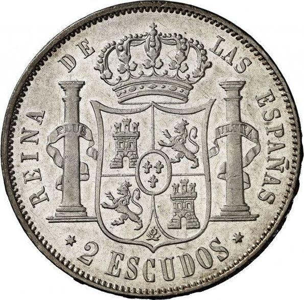 Find out the current coin value of the Spanish 2 Escudos 1865 . 6-pointed star. This silver coin from the times of Isabella II struck at the Madrid Mint. Wondering how much a coin like this is worth? The record price belongs to the lot 511 sold at the Aureo & Calicó, S.L. auction for EUR 10,000. Bidding took place April 28, 2011.