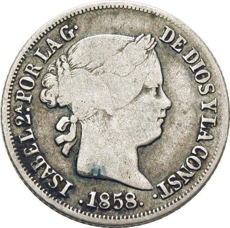 2 Reales 1858. 8-pointed star (Spain, Isabella II)