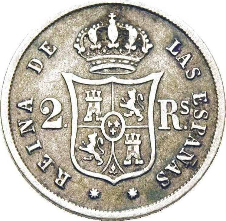 Find out the current coin value of the Spanish 2 Reales 1858 . 8-pointed star. This silver coin from the times of Isabella II struck at the Barcelona Mint. Wondering how much a coin like this is worth? The record price belongs to the lot 1661 sold at the Aureo & Calicó, S.L. auction for EUR 1,800. Bidding took place November 30, 2011.