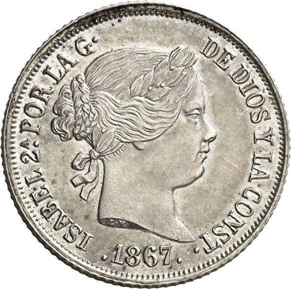 How much is the silver coin of Isabella II 20 Céntimos de escudo 1867, 6-pointed star?