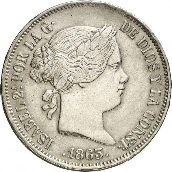 20 Reales 1863 "Type 1855-1864". 6-pointed star (Spain, Isabella II)