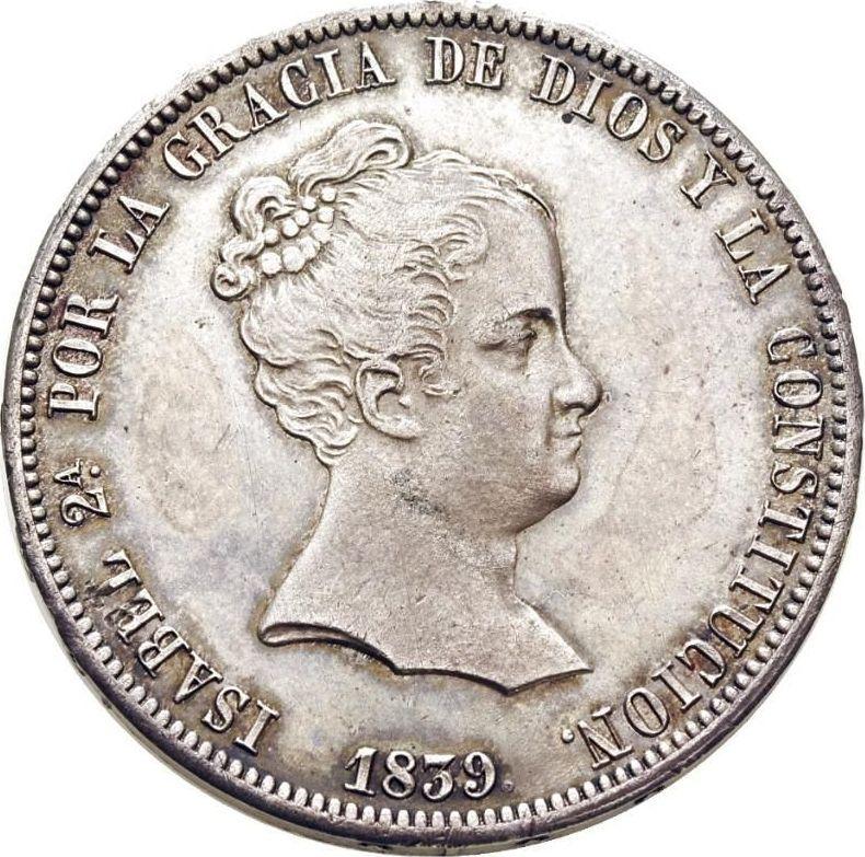 According to the latest data as of December 5, 2025 the average price of a Silver coin 20 Reales 1839 with mark M CL is 1800 USD for regular strike and 2800 USD for coins minted using the PROOF technology.