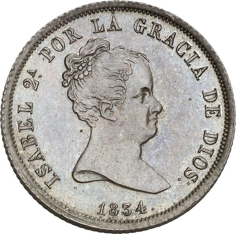 Find out the current coin value of the Spanish 4 Reales 1834 with mark M DG. This silver coin from the times of Isabella II struck at the Madrid Mint. Wondering how much a coin like this is worth? The record price belongs to the lot 403 sold at the Aureo & Calicó, S.L. auction for EUR 8,000. Bidding took place April 28, 2016.