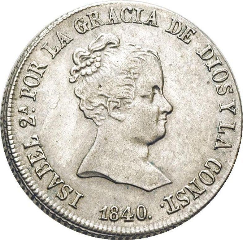 Find out the current coin value of the Spanish 4 Reales 1840 with mark S RD. This silver coin from the times of Isabella II struck at the Seville Mint. Wondering how much a coin like this is worth? The record price belongs to the lot 1144 sold at the Aureo & Calicó, S.L. auction for EUR 950. Bidding took place October 29, 2015.