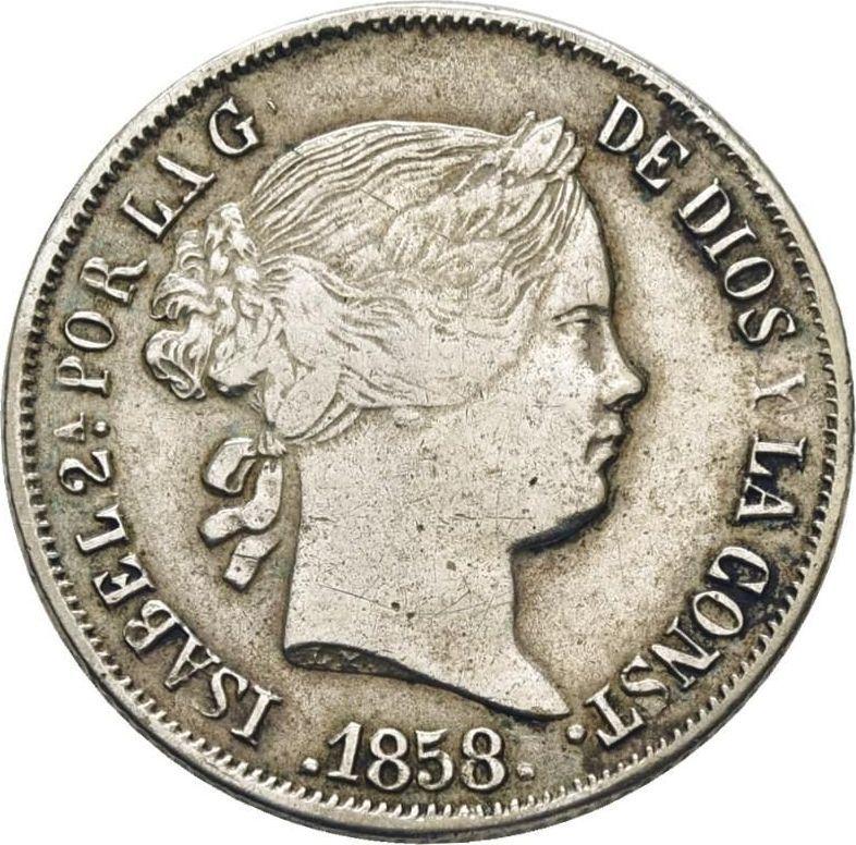 4 Reales 1858. 8-pointed star (Spain, Isabella II)