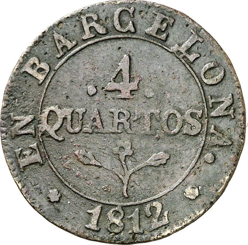 Find out the current coin value of the Spanish 4 Cuartos 1812 "Casting". This copper coin from the times of Joseph Bonaparte struck at the Barcelona Mint. Wondering how much a coin like this is worth? The record price belongs to the lot 1678 sold at the Aureo & Calicó, S.L. auction for EUR 65. Bidding took place October 27, 2011.