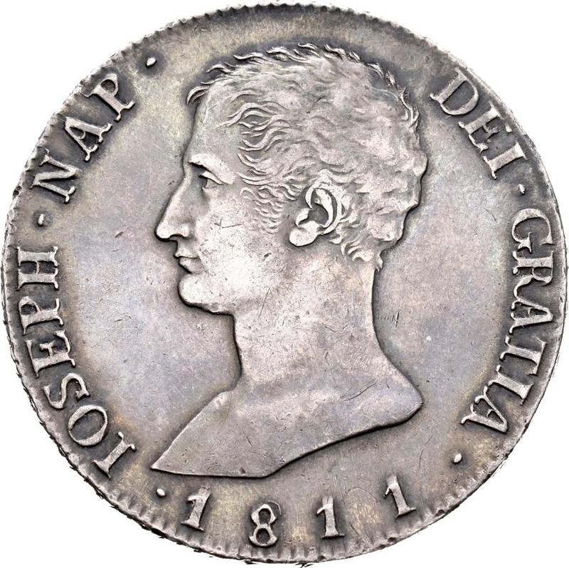 Find out the current coin value of the Spanish 20 Reales 1811 with mark M AI. This silver coin from the times of Joseph Bonaparte struck at the Madrid Mint. Wondering how much a coin like this is worth? The record price belongs to the lot 2351 sold at the Soler y Llach S.L. auction for EUR 2,050. Bidding took place October 27, 2021.