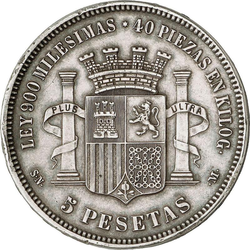 According to the latest data as of December 5, 2025 the average price of a Silver coin 5 Pesetas 1869 with mark SNM is 14000 USD for regular strike and 22000 USD for coins minted using the PROOF technology.
