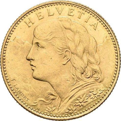 The information on the current value of the Swiss coin 10 Francs 1914 "Vreneli" with the letters B is based on actual auction sales of similar specimens. To reflect the current price level, our service monitors over 590 numismatic companies and records auction results in the coin catalog and auction archive. Please note that the exact value depends directly on the coin's condition, so the average price serves only as an approximate estimate.