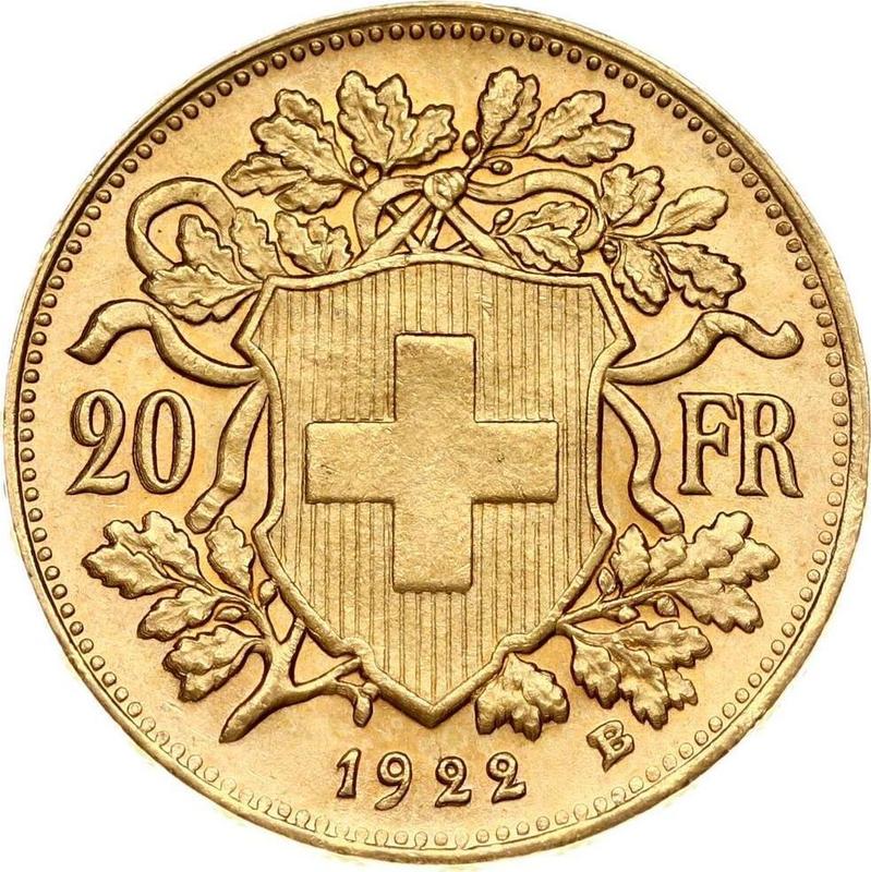 20 Francs 1922 B "Vreneli" (Switzerland, Confederation)