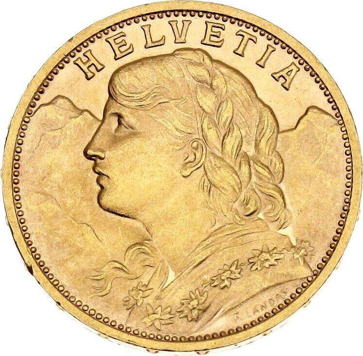 How much is the gold coin of Confederation 20 Francs 1927 B "Vreneli"?