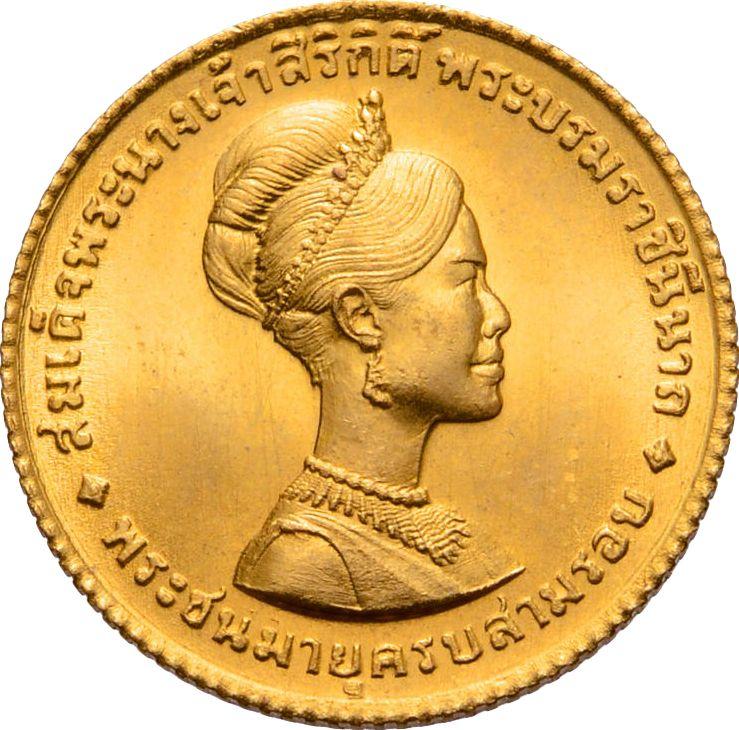Find out the current coin value of the Thai 150 Baht BE 2511 (1968) "Queen Sirikit 36th Birthday". This gold coin from the times of Rama IX. Wondering how much a coin like this is worth? The record price belongs to the lot 4594 sold at the Fritz Rudolf Künker GmbH & Co. KG auction for EUR 2,200. Bidding took place September 28, 2017.
