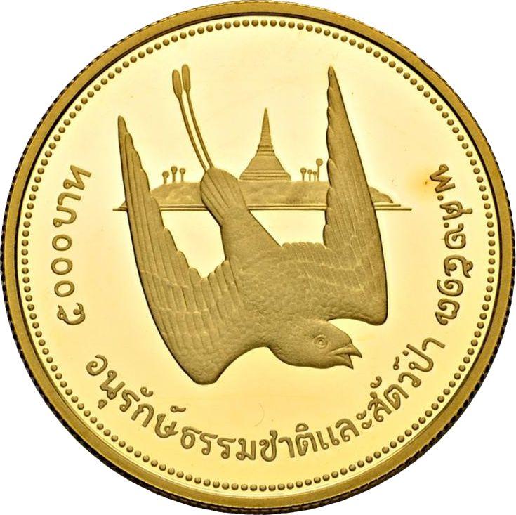 Find out the current coin value of the Thai 5000 Baht BE 2517 (1974) "White-eyed River Martin". This gold coin from the times of Rama IX. Wondering how much a coin like this is worth? The record price belongs to the lot 30365 sold at the Heritage Auctions auction for USD 19,200. Bidding took place July 12, 2020.