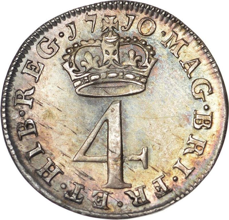 Find out the current coin value of the British Fourpence (Groat) 1710 . This silver coin from the times of Anne. Wondering how much a coin like this is worth? The record price belongs to the lot 8647 sold at the Spink auction for GBP 420. Bidding took place October 27, 2023.