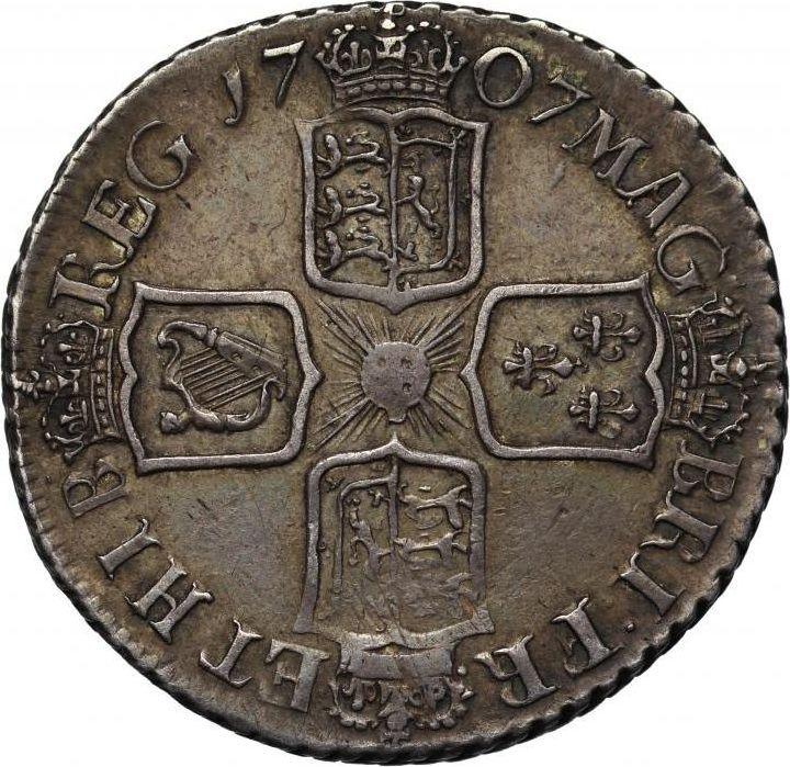 Sixpence 1707 E "Type 1707-1711". Post-Union (United Kingdom, Anne)
