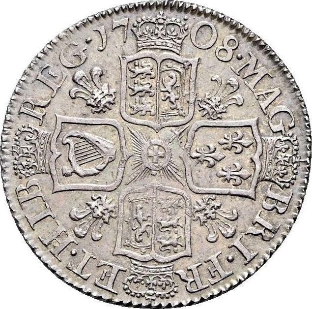 Shilling 1708 "Third draped bust". Plumes in angles (United Kingdom, Anne)