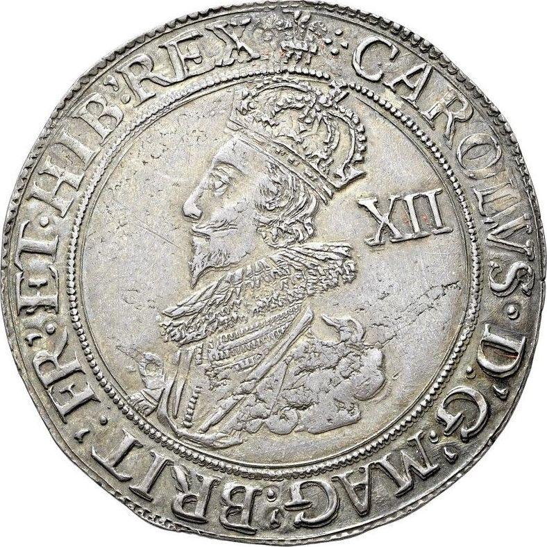 Shilling no date (1625-1642) "Third draped bust". Plume above the shield (United Kingdom, Charles I)