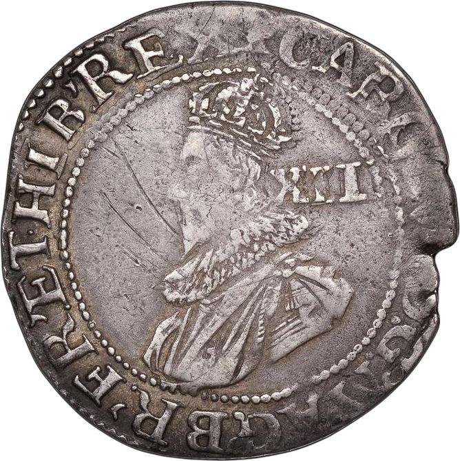 How much is the silver coin of Charles I Shilling no date (1625-1642) "Second draped bust", Plume above the shield, Cross on shield?