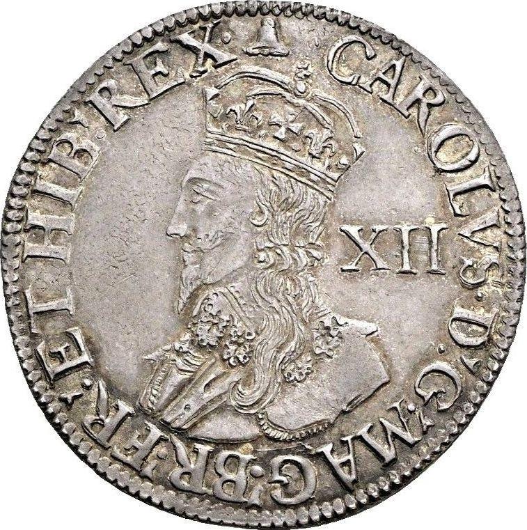 Shilling no date (1625-1642) "Fourth draped bust". Plume above the shield. Without outline (United Kingdom, Charles I)
