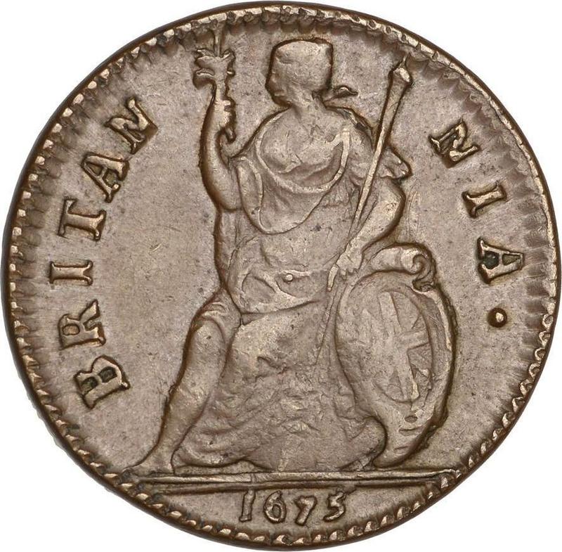 Find out the current coin value of the British Farthing 1675 . This copper coin from the times of Charles II. Wondering how much a coin like this is worth? The record price belongs to the lot 418 sold at the Spink auction for GBP 1,700. Bidding took place December 17, 2024.