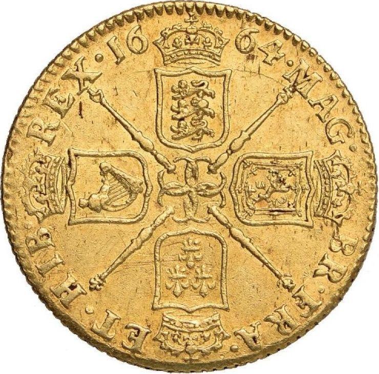 The information on the current value of the British coin Guinea 1664 "Third laureate bust" is based on actual auction sales of similar specimens. To reflect the current price level, our service monitors over 590 numismatic companies and records auction results in the coin catalog and auction archive. Please note that the exact value depends directly on the coin's condition, so the average price serves only as an approximate estimate.