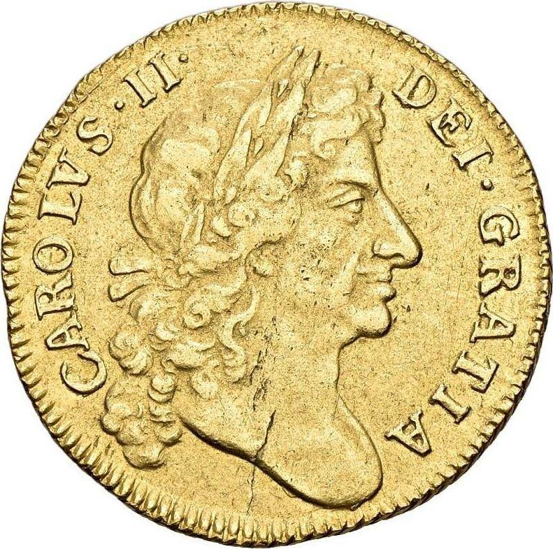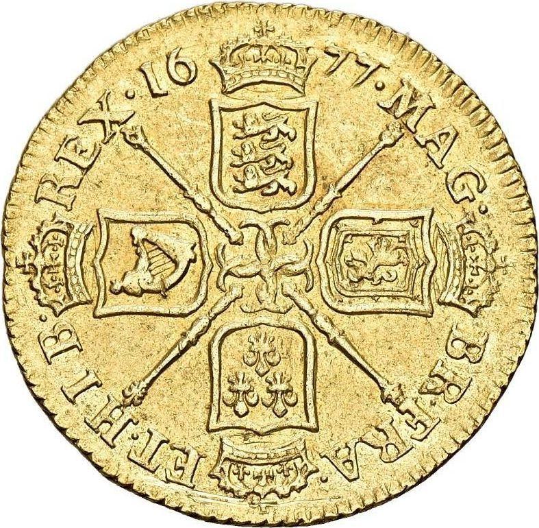 How much is the gold coin of Charles II Guinea 1677 "Fourth laureate bust"?