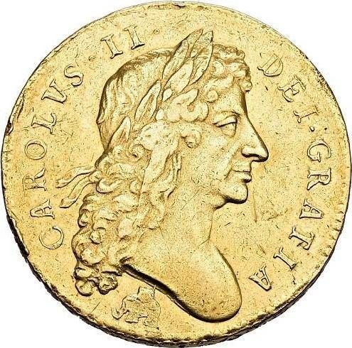 Five guineas 1680 "Second laureate bust". Elephant and castle (United Kingdom, Charles II)